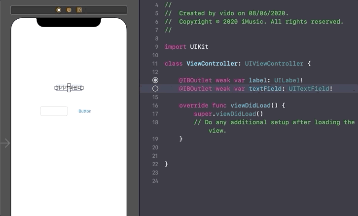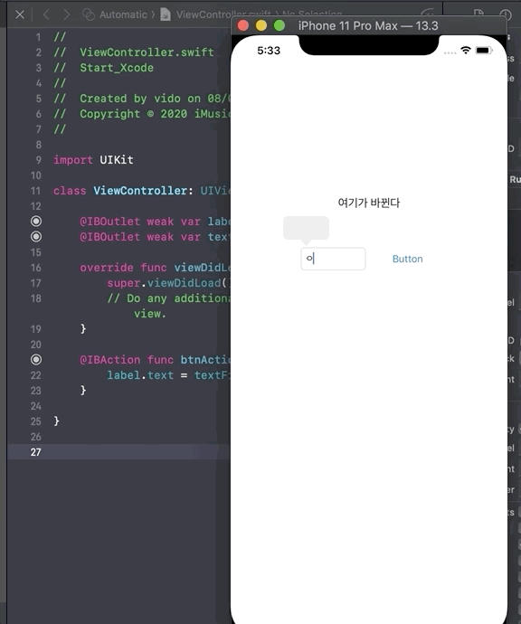 label.text = textField.text // label의 Text를 textField의 Text로 바꾼다.