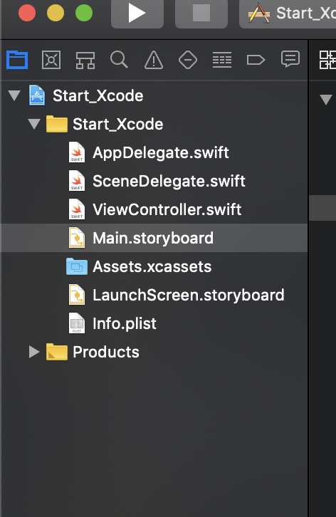 프로젝트를 생성했다면 Project Navigator에 Main.stroyboard를 선택해 주세요.