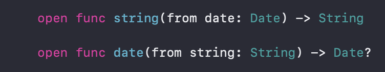 date(from string: String) 함수는 String으로 들어온 것을 Date?로 반환시켜줍니다.